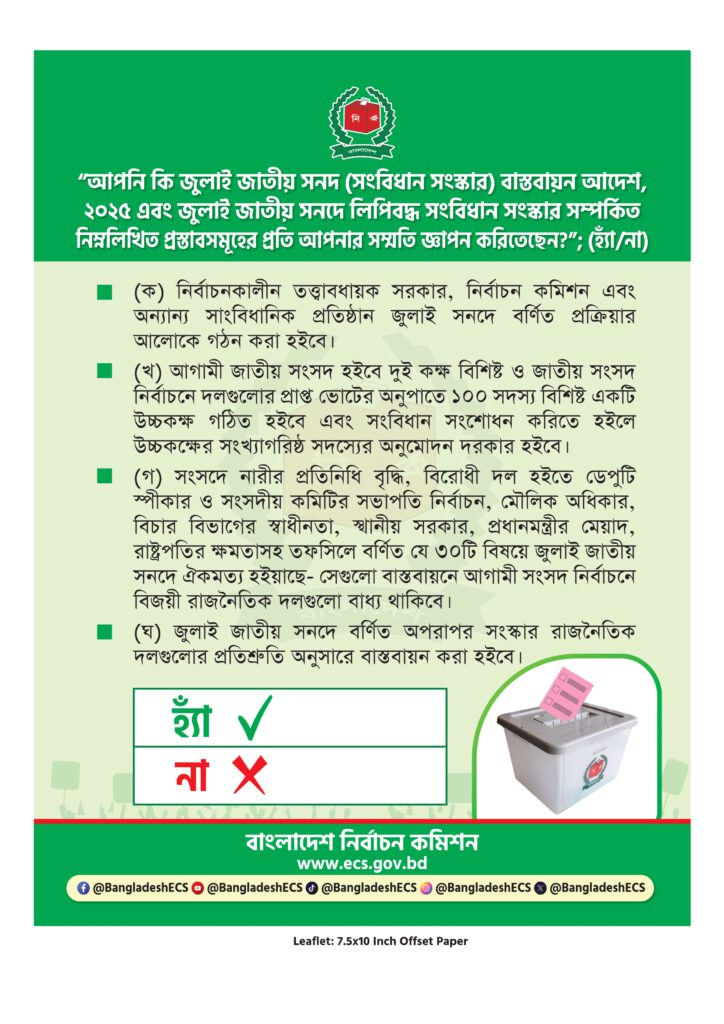 সকলের স্বতঃস্ফূর্ত অংশগ্রহণ ও সময়মতো নিবন্ধনের মাধ্যমে জাতীয় নির্বাচনে আপনার ভোটাধিকার প্রয়োগের সুযোগটি নিশ্চিত করুন।