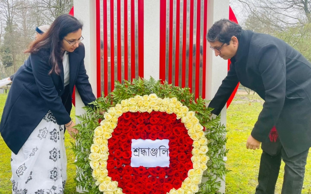 Earlier, in the morning, Amb. Hamidullah along with Embassy officials, family members and Bangladeshi community in the Netherlands, placed floral wreaths at the Language Memorial at Zouder Park.