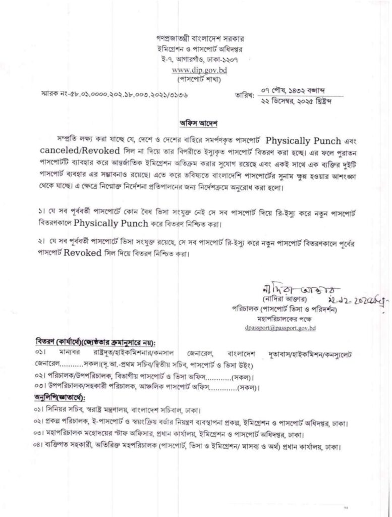 – To collect the new issued passport, original previous MRP/ E-Passport is mandatory to bring. Without the previous passport, new passport will not be delivered.